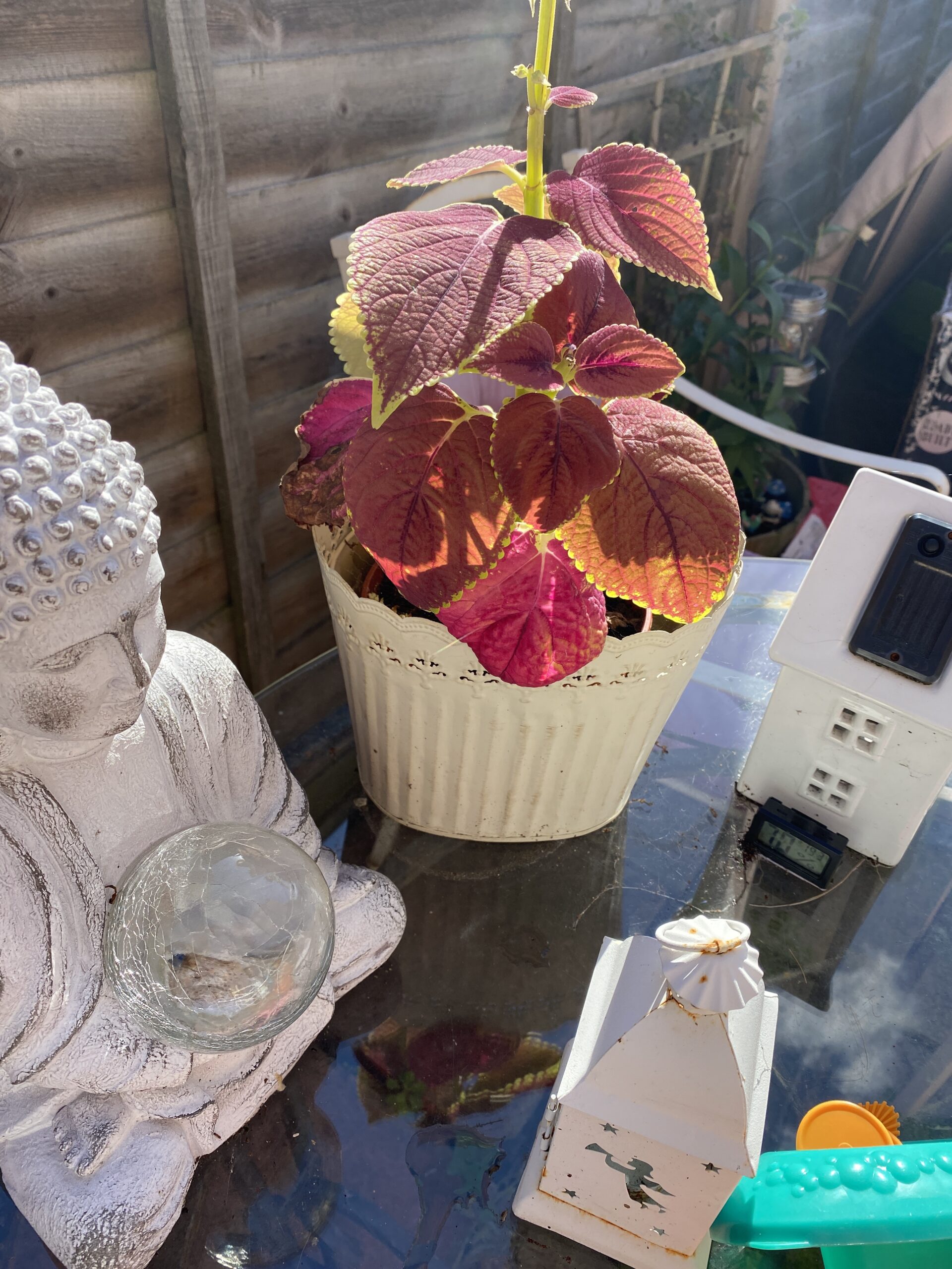 I love autumn with all the different shades of colours of the leaves, particularly my grape vine with the greens, reds and brown leaves. We still have sunny days here and it’s lovely to get the last of the heat on your skin, it feels like it warms my bones up. The late flowering lilies are looking super this year, I will get some more of them so I can have a pot full of them next year. The colios are still ok in the garden but will have to bring them in next month, I’m hoping to get some seeds from them this year so I can have a fuller display in the future. I will be putting a pond in during the next couple of months so the garden will look very different down the bottom. I have put in more bedding plants this year so I have some winter colour to look out on.