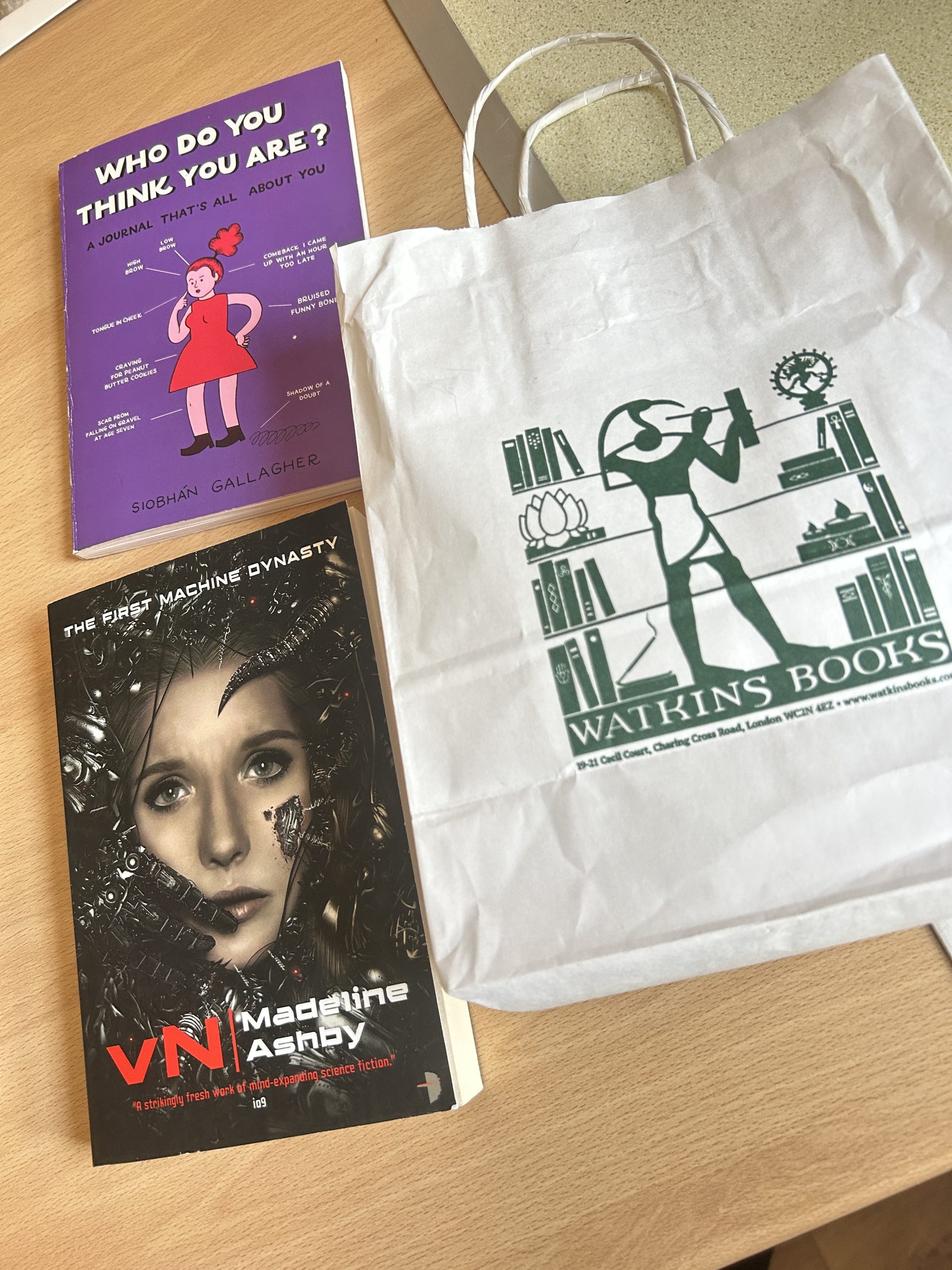 What a brilliant road! I could have spent so long here going into every single shop. I also wished I had taken all the old coins I found at my Mum’s. I bought two books for £1 each. VN by Madeline Ashby, just because my maiden name was Ashby. It is science fiction, so I thought I would get out of my comfort zone and read something different. The other book, I just wanted to fill it in and leave it to Enzo.