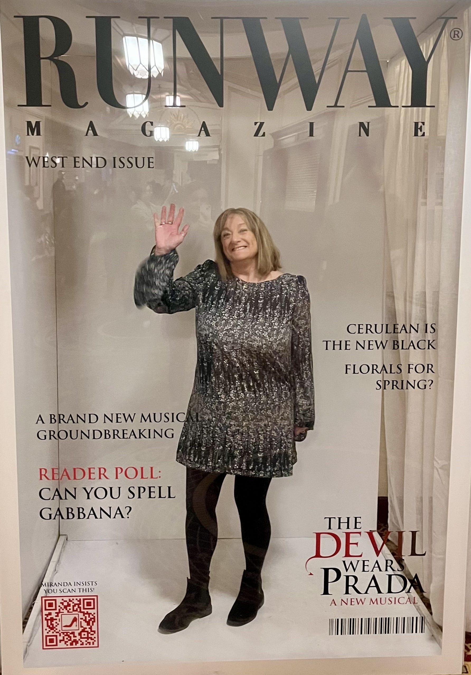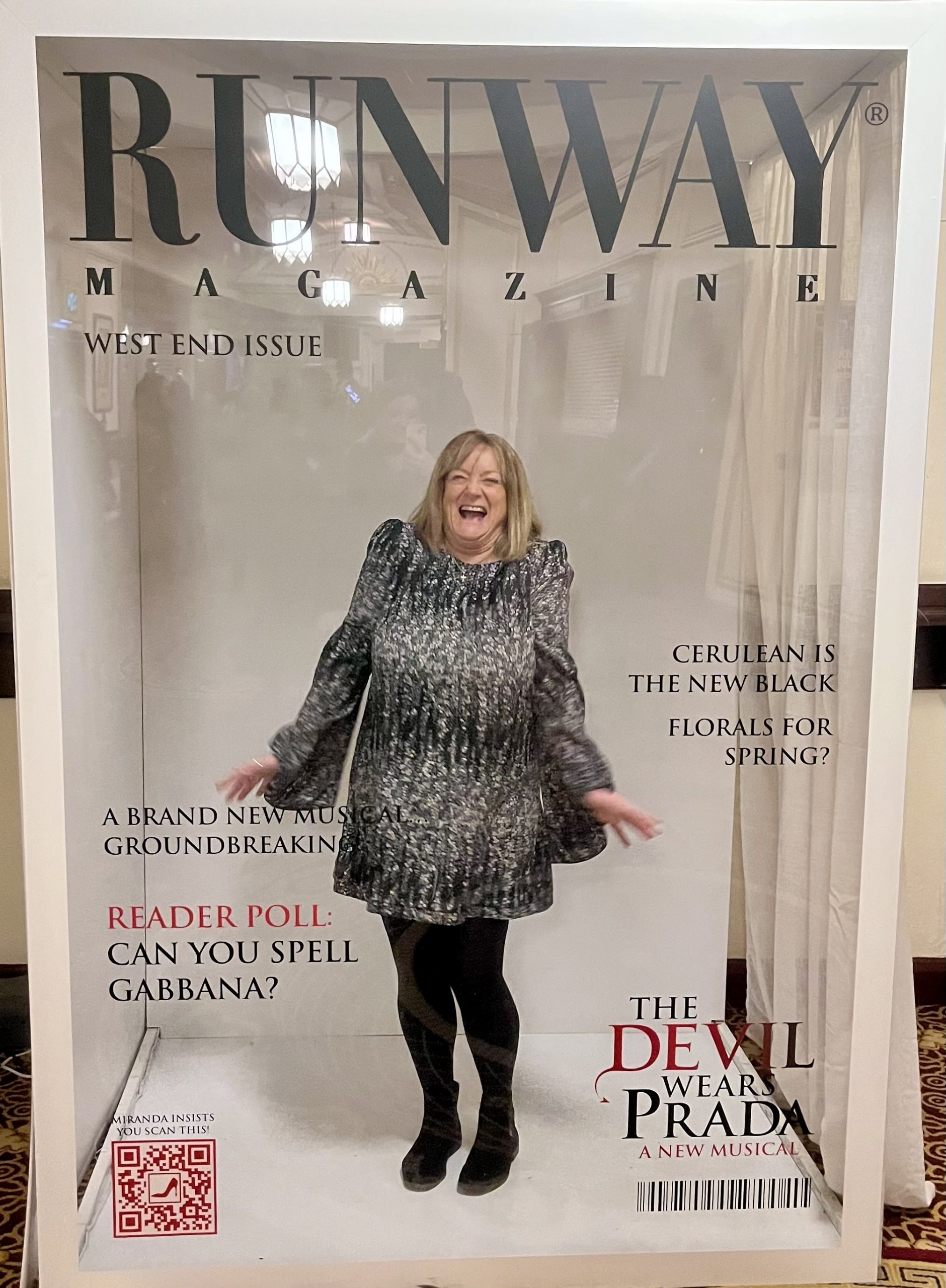 It was another brilliant night during our break in London. As we got out in the lobby, they had a magazine front page where you could take photos, so we had a go in there for a laugh. It’s a shame it didn’t say Karen’s World! lol