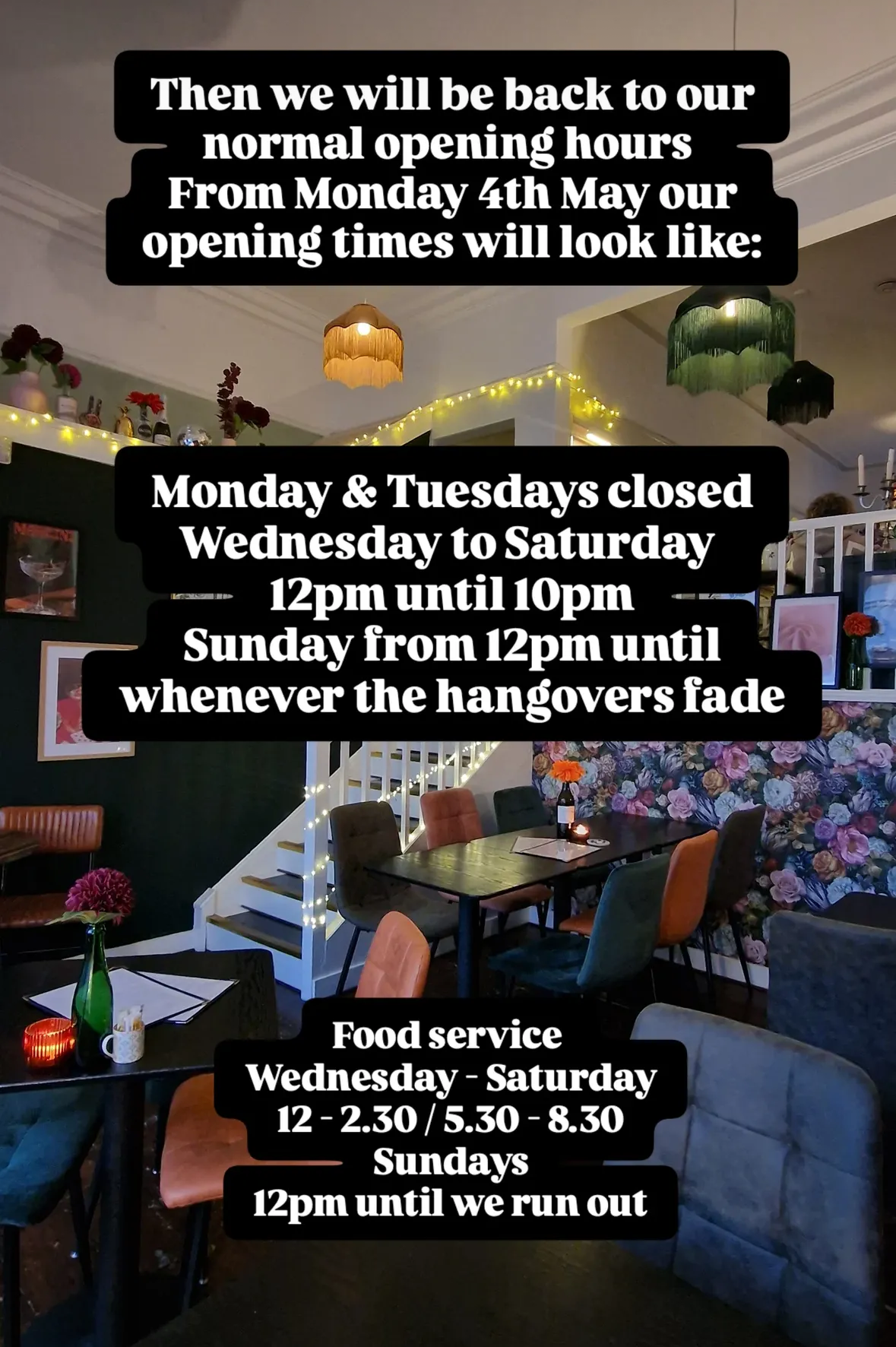 I am loving the little plate of nibbles with your wine, what a super idea. After their heavy weekend and the road works coming to an end, I have put up their new opening times.