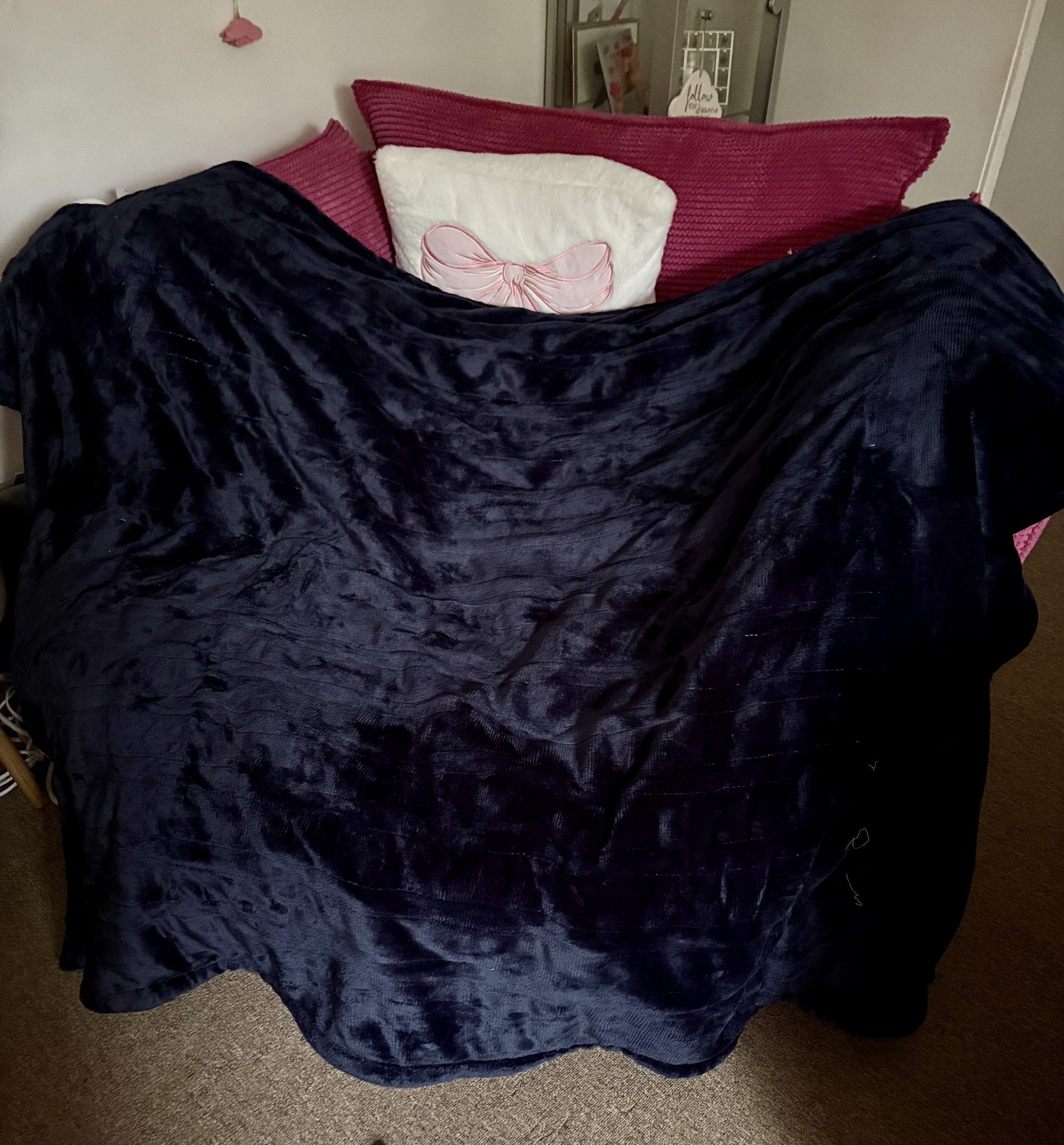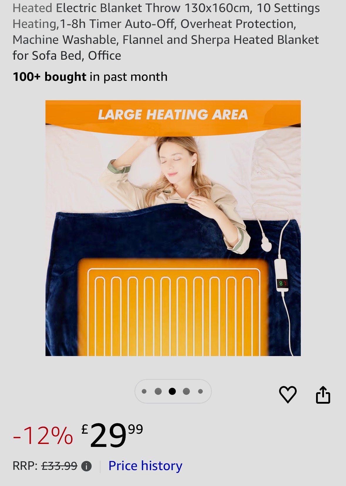 I don’t really touch the setting once you have it as your required heat. I love this navy blue as I feel it looks all cosy, and with the furry underside, you will not want to move once you get settled.