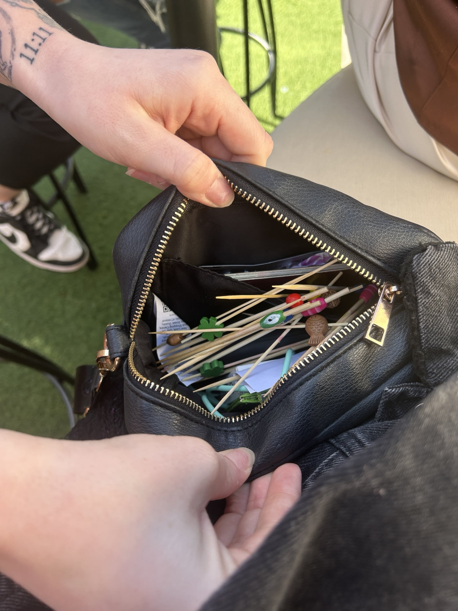 The assortment of sticks Kara collected for Enzo was impressive as the next table gave her some, and then the bar owner also gave her a selection. Enzo will be impressed.