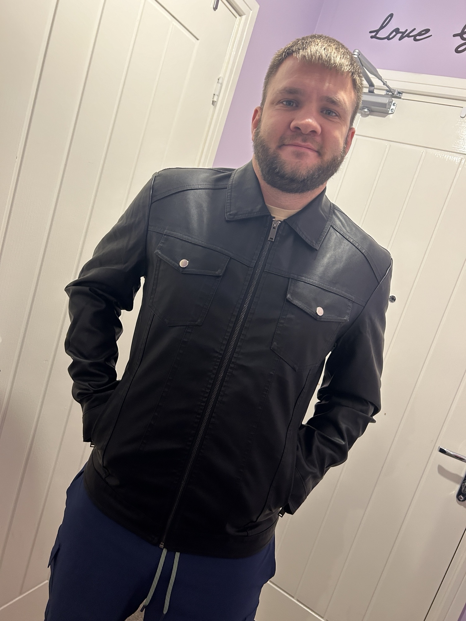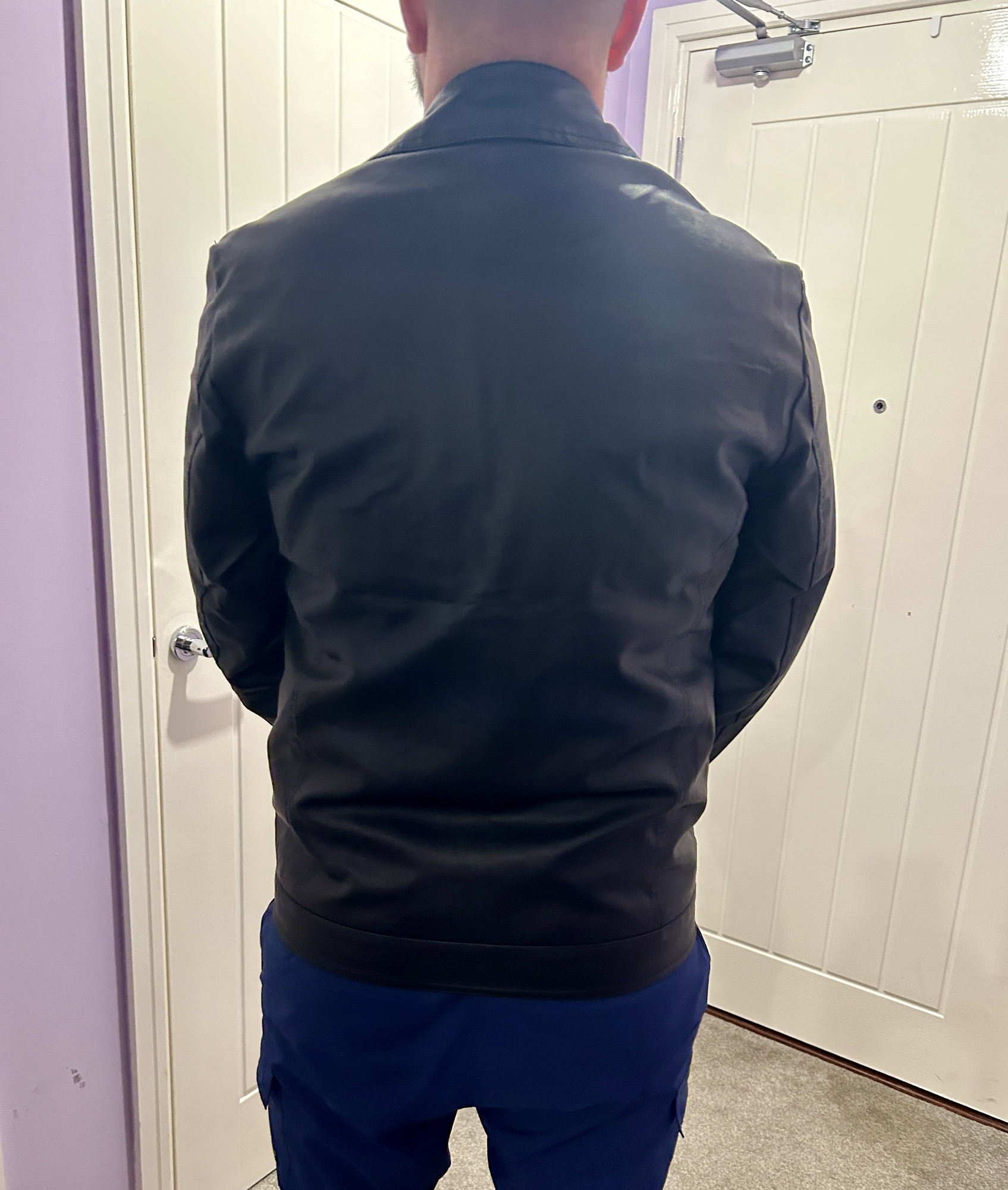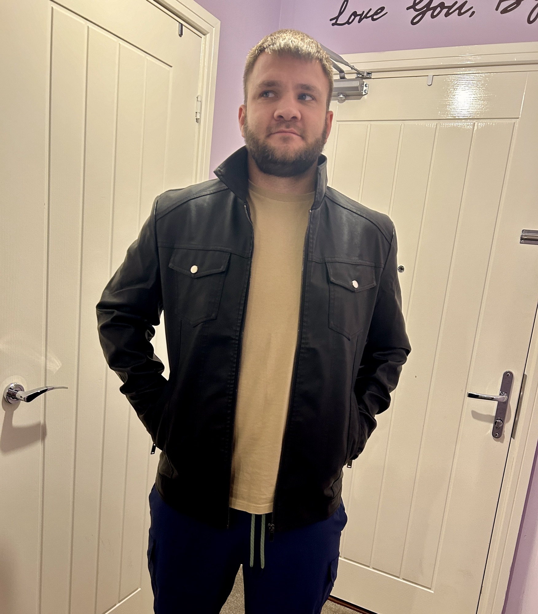This jacket feels and looks like real leather so would make a great Christmas present for the males in your life. It comes in four sizes this one was a medium and reasonably priced at £49.99