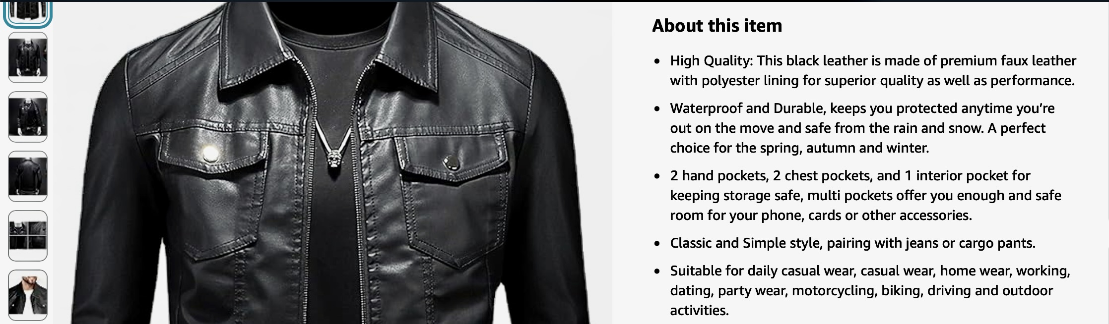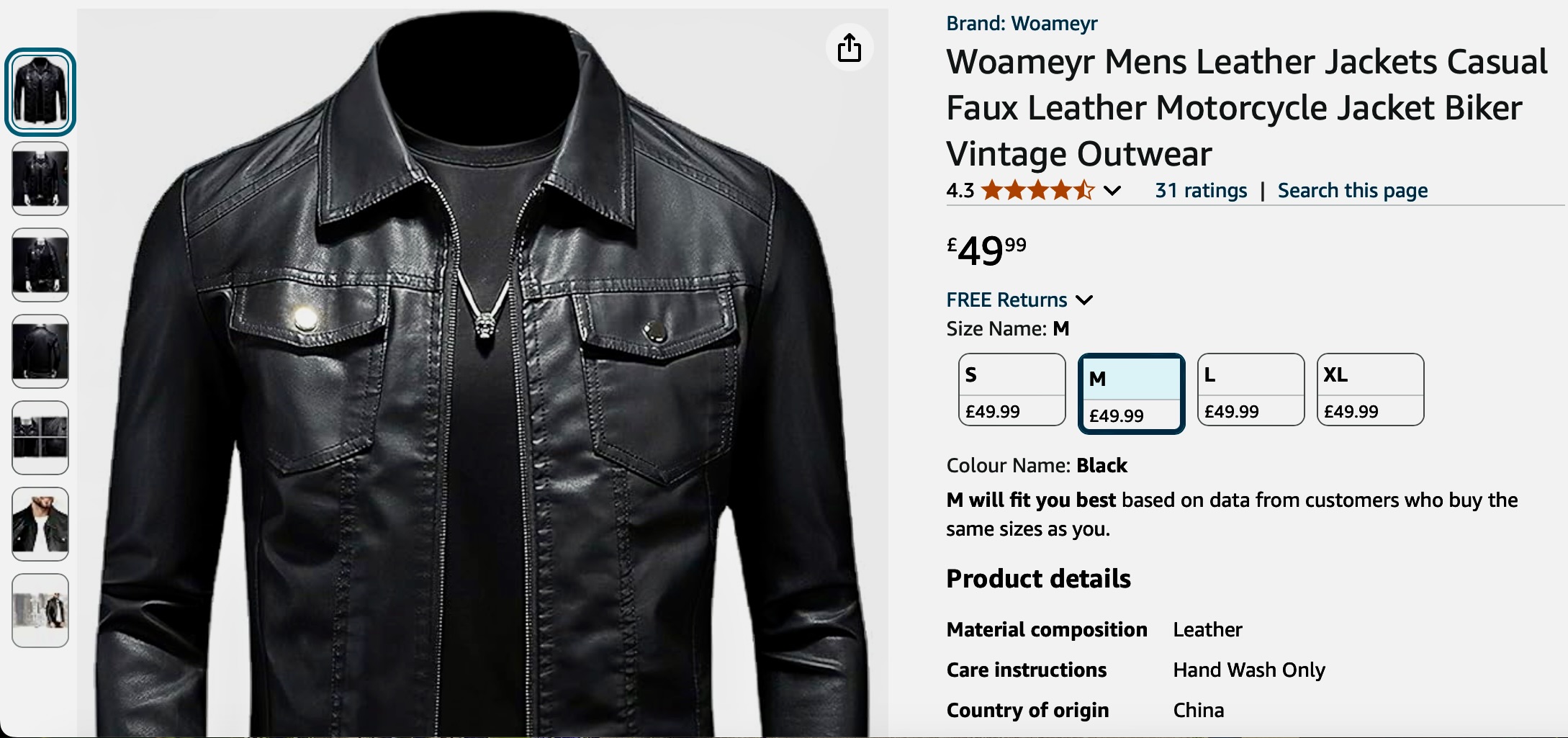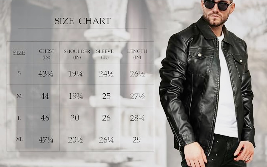 This jacket feels and looks like real leather so would make a great Christmas present for the males in your life. It comes in four sizes this one was a medium and reasonably priced at £49.99