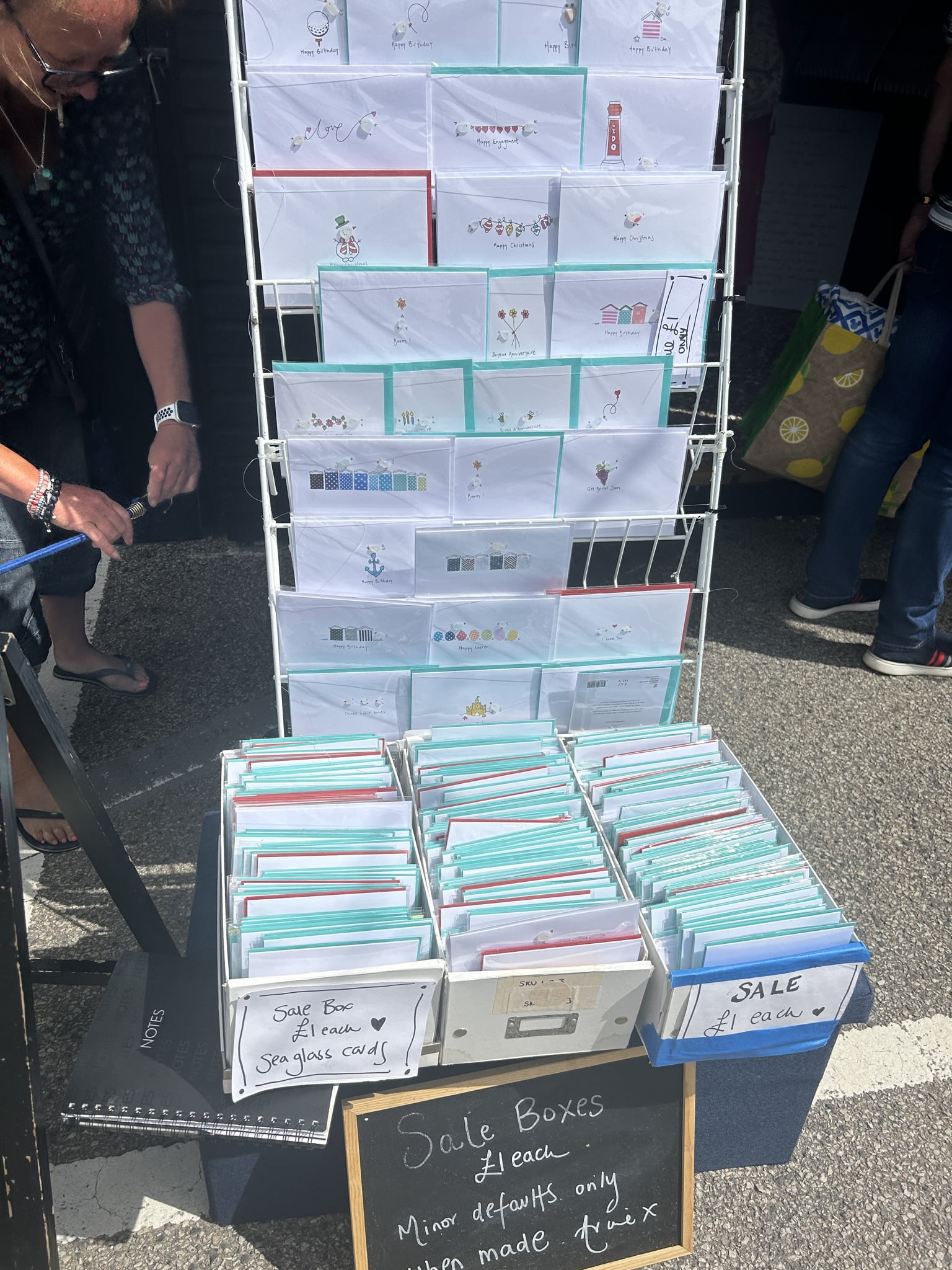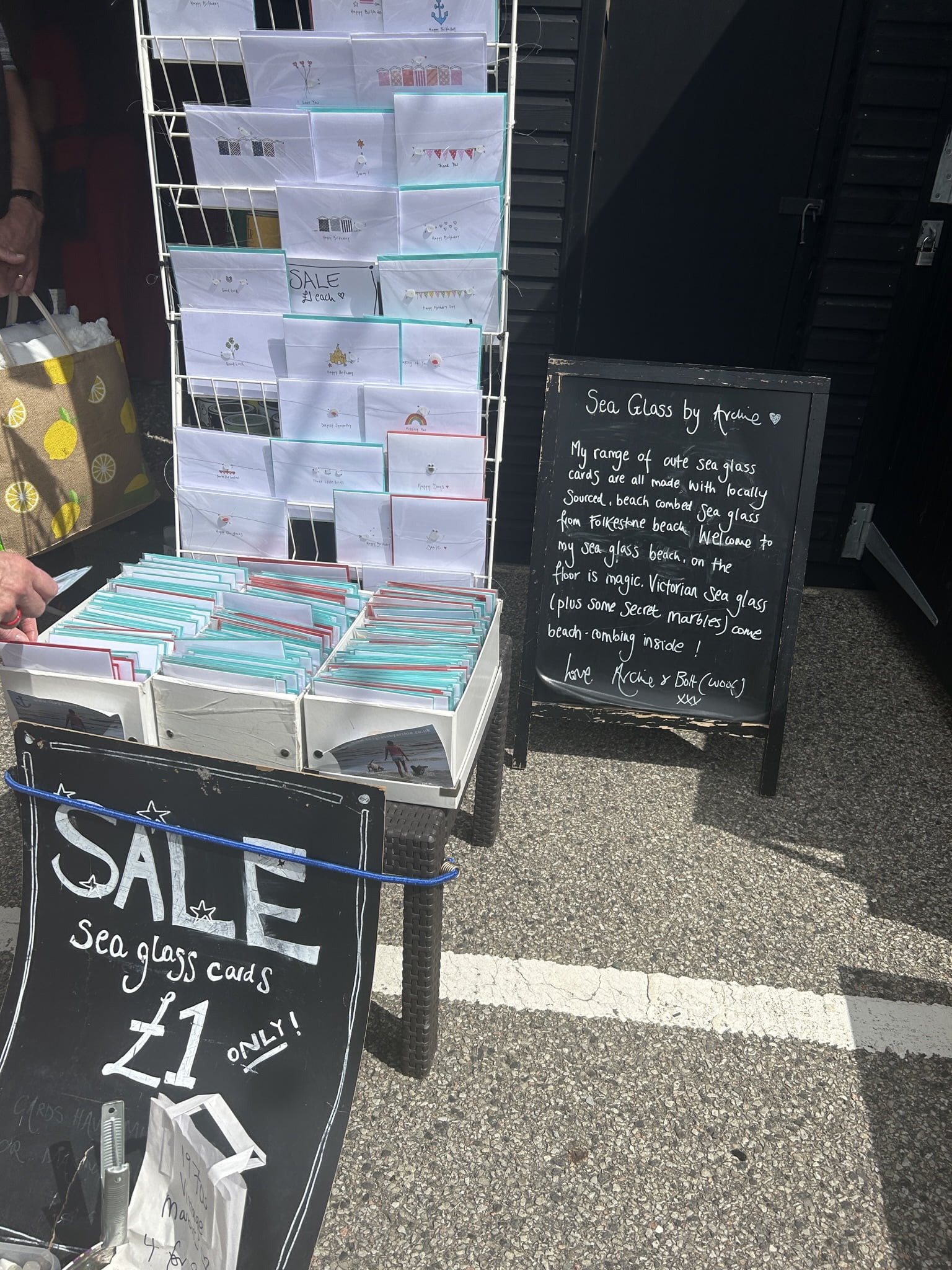 There are some beautiful cards and designs here in the small hut on the Harbour Arm, so many local people design and make such wonderful things to sell here in the Marketplace. I think I will start walking along the beach to collect some sea glass as it all looks amazing.