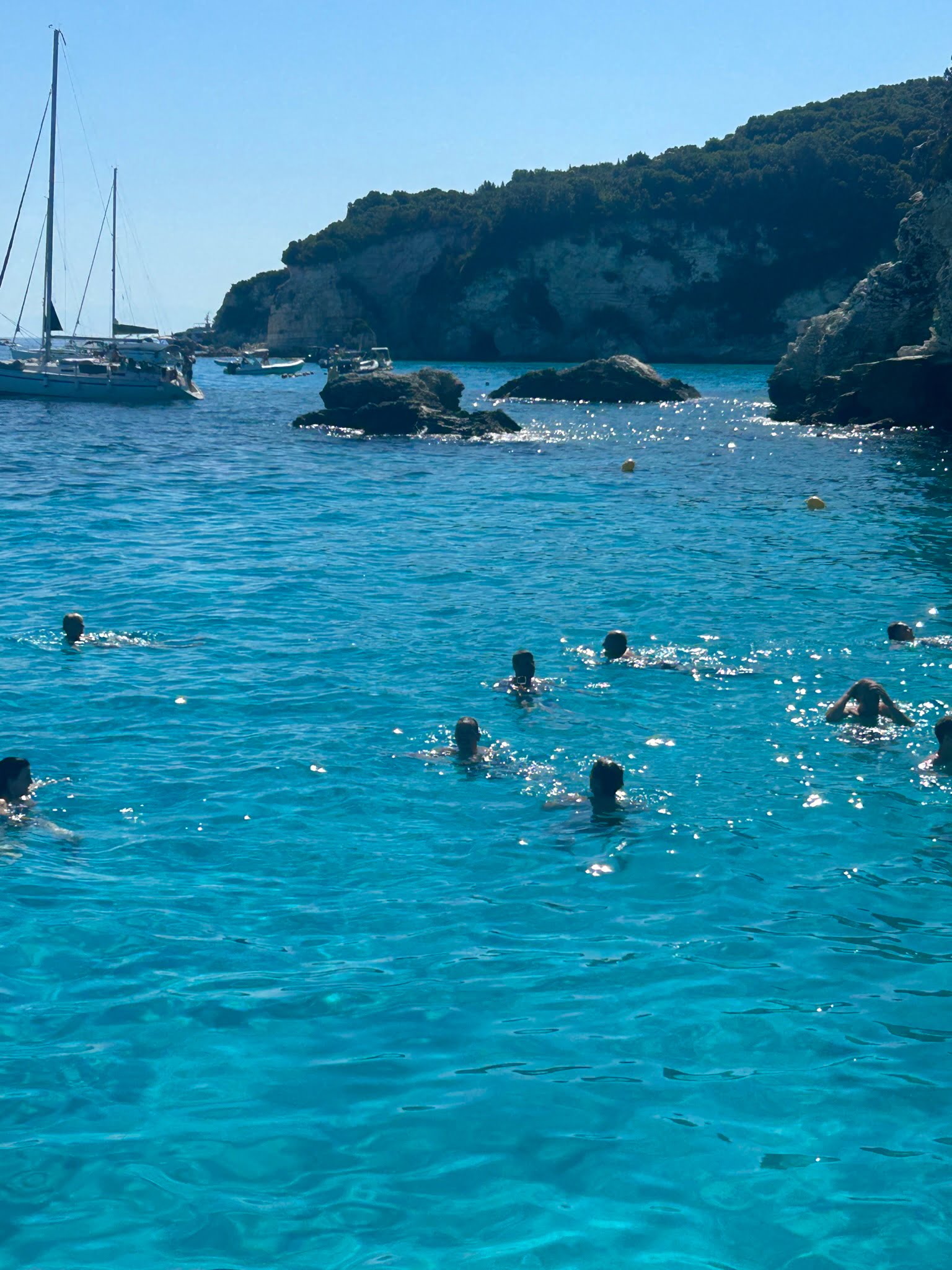 I have never been on this trip before even though this is the third time I have been to Corfu. The day starts when they pick you up at your apartment about 8.45 you then travel by coach or car to the port. The boat is there ready for you to board and then pay, €35 is a good price for a lovely day out. After you leave the port you follow the coast round and he shows you the many caves, smaller boats are able to go in the caves. We then go to AntiPaxos where they anchor away from the beach so you are able to jump in the water or go down the steps for a more leisurely swim. We were there for about an hour, you can just stay on board and appreciate the views they also have a small bar where you can get soft drinks, cans of Greek beer or tea and coffee.